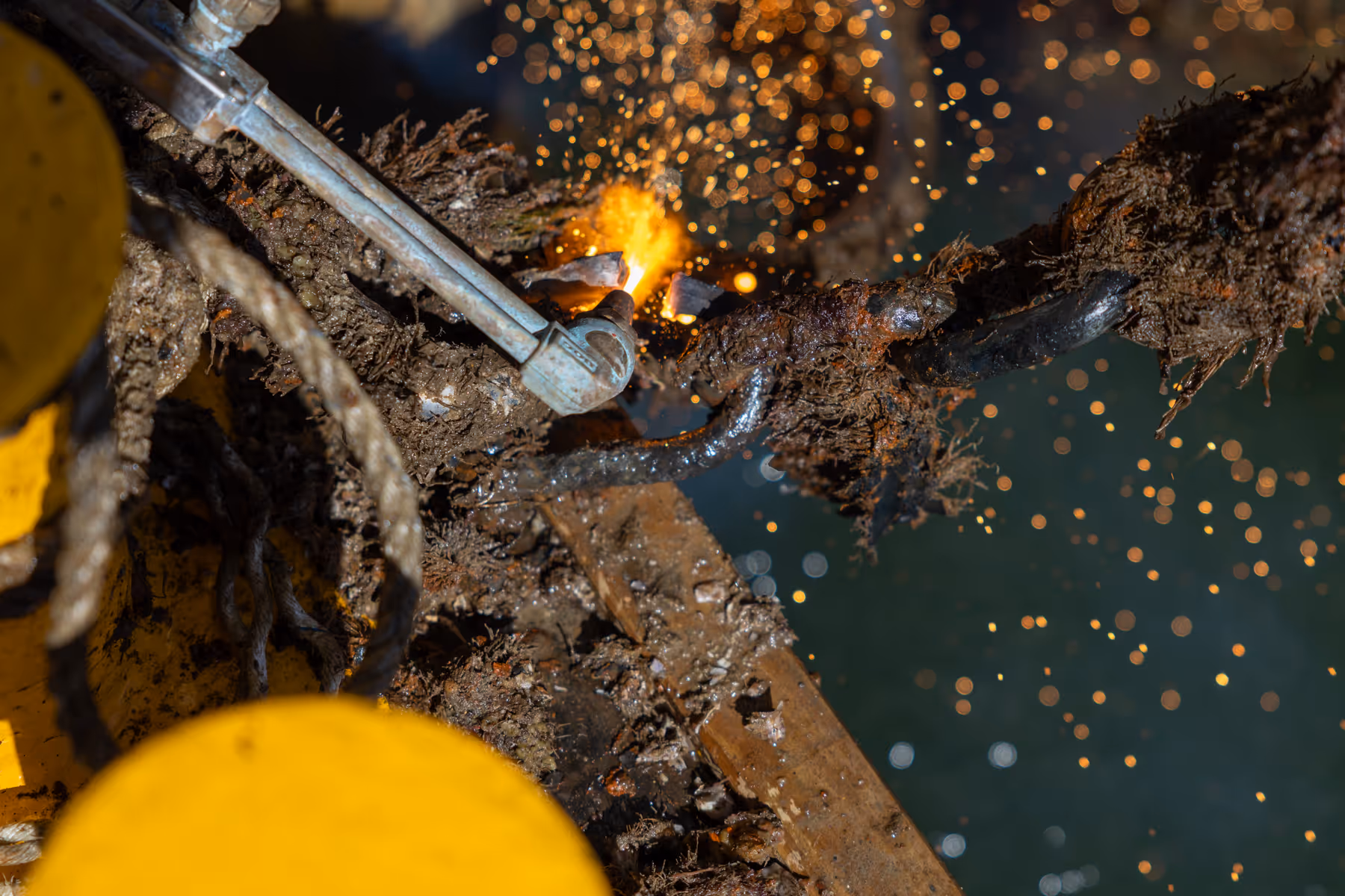 Specialist underwater anode installation in Tauranga using SSBA and Broco welding systems to protect steel sheet piling with 300 kg anodes and verified cathodic protection coverage.