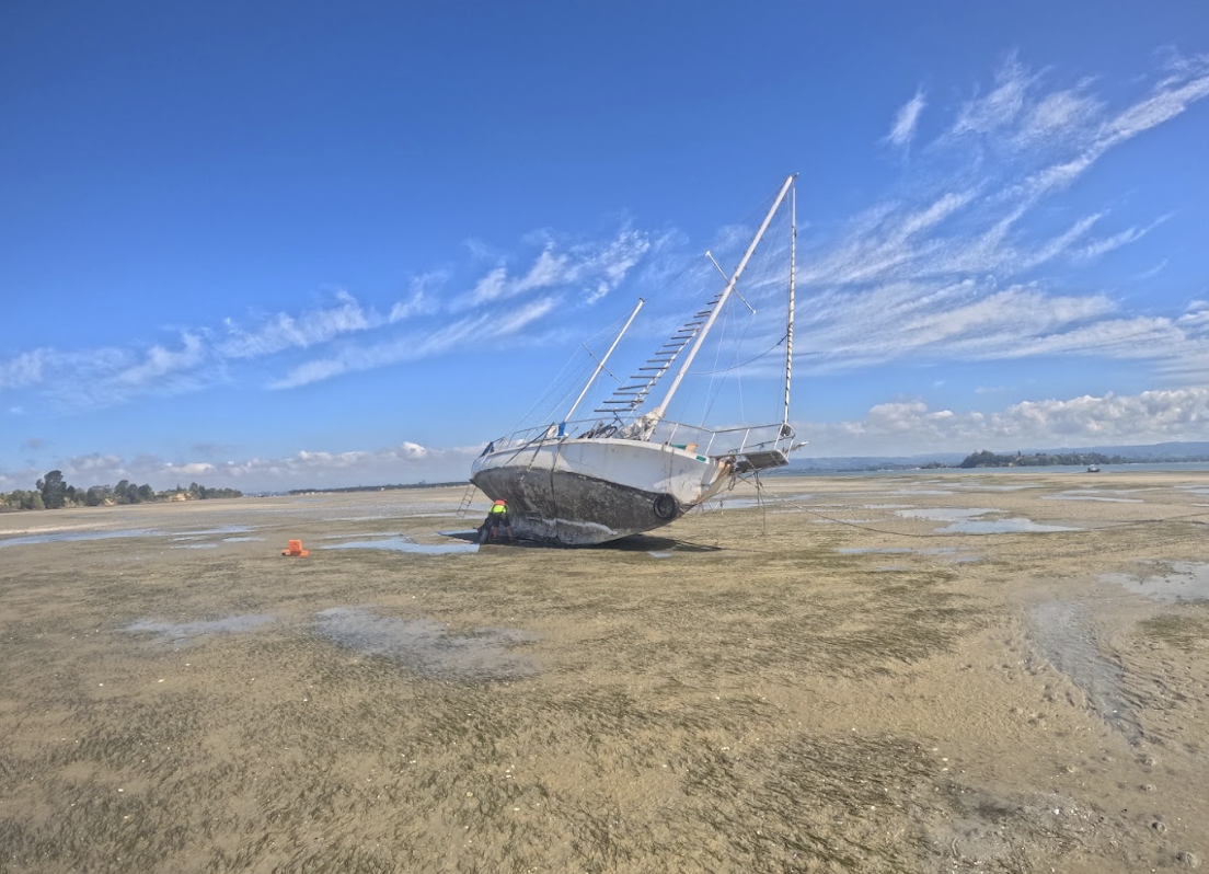 Successful salvage of a beached yacht in the inner Tauranga Harbour on Matakana Island with zero environmental impact.