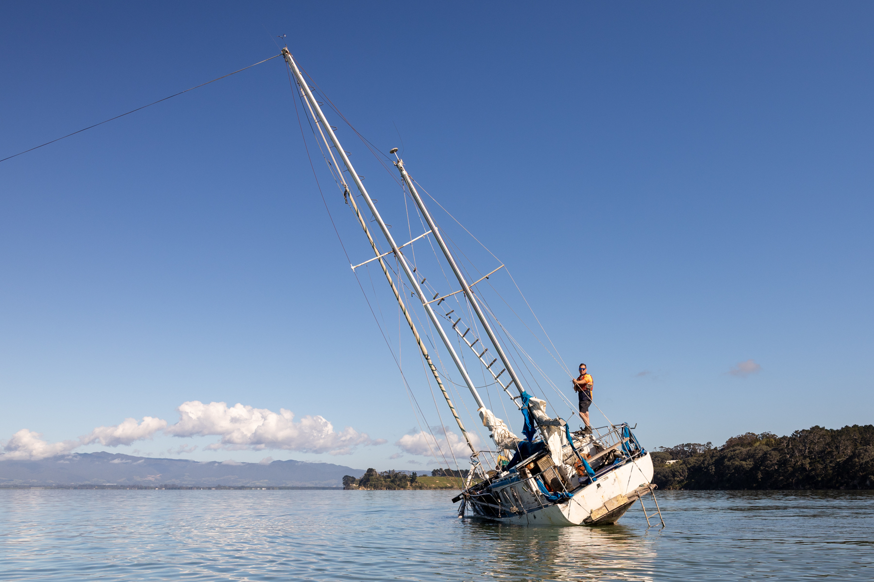 Salvage of a 40-foot yacht on Matakana Island