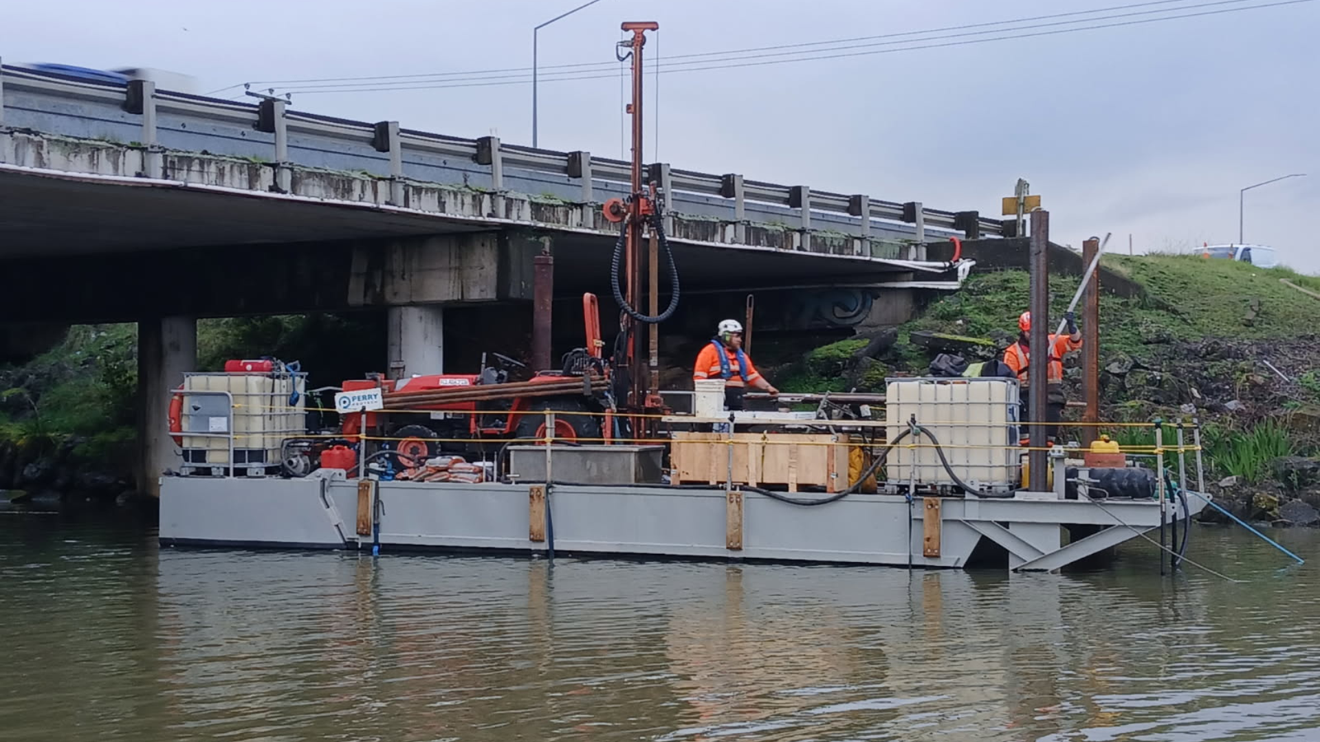 - Webster Barge: 10m x 3.5m steel drill barge with Palfinger crane and spud system—stable working platform, transportable nationwide